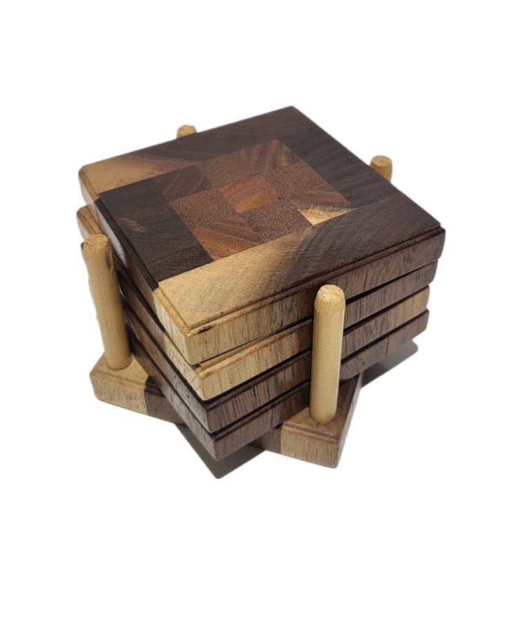 Walnut And Reclaimed Timber Coasters + Base quantity